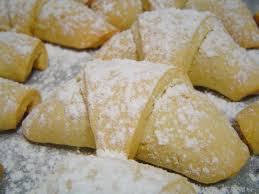 KABARMIŞ HAMURDAN PARÇALAR KOPAR.ELİNLE YUVARLA İÇİNE ELMA KOY.AY ŞEKLİ VER.İSTERSEN SİGARA BÖREĞİ GİBİ DE DE KESEREK SARABİLİRSİN.YAĞLANMIŞ TEPSİYE DİZ.FIIRNDA PİŞİR.ÜZERİEN PUDRA ŞEKERİ SERP SERVİS YAP.